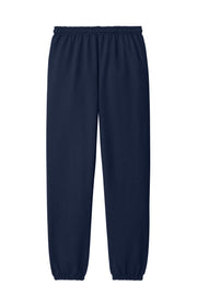 8-ounce 50/50 cotton/poly Covered elastic waistband with drawcordElastic cuffsDouble-needle bottom hemRecycled high-performing black tear-away label