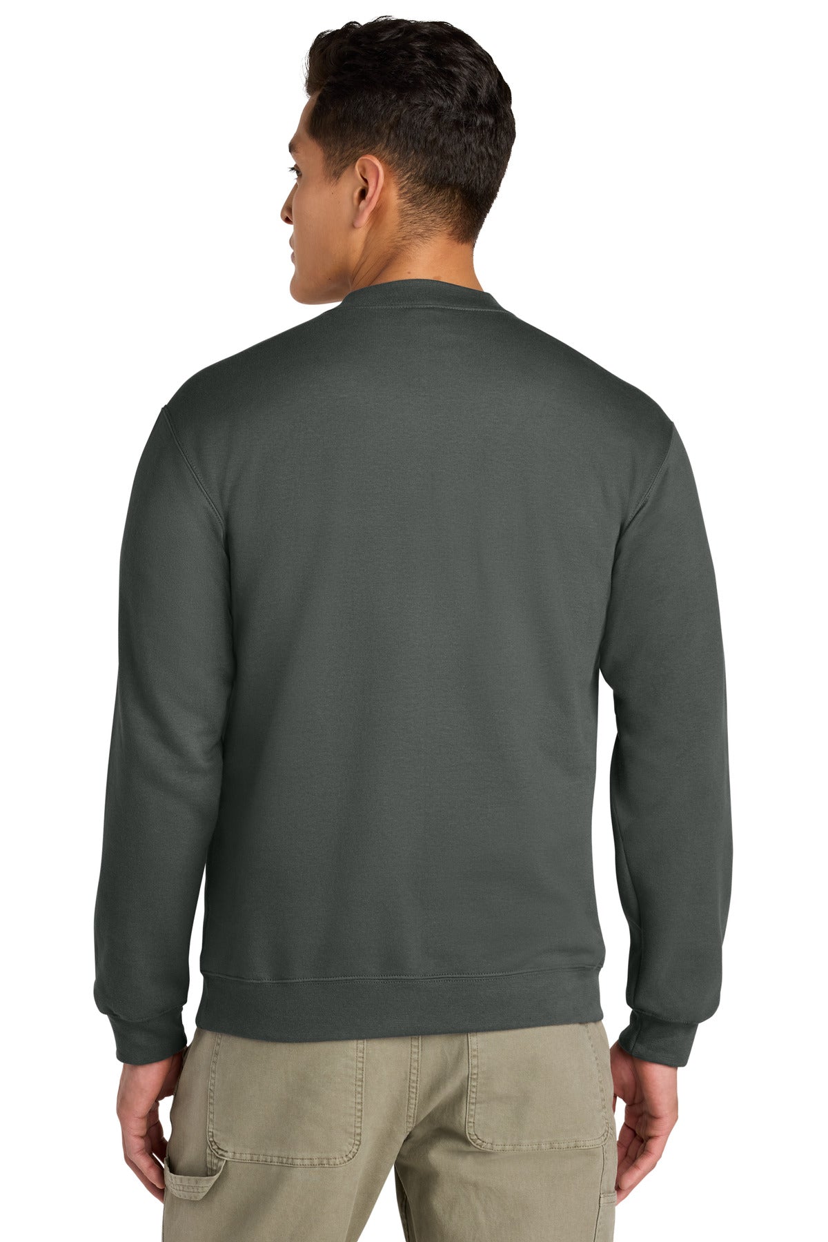8.4-ounce 80/20 ring spun cotton/polyester75/25 ring spun cotton/polyester (Ring Spun Sport Grey) 100% ring spun cotton face 1x1 rib with spandex varsity collar cuffs and bottom band Dyed-to-match reverse coil locking zipper Classic fit tubular body Recycled high-performing black tear-away label