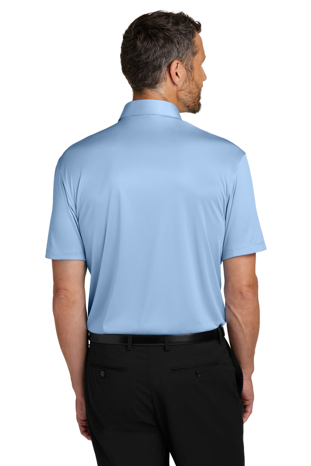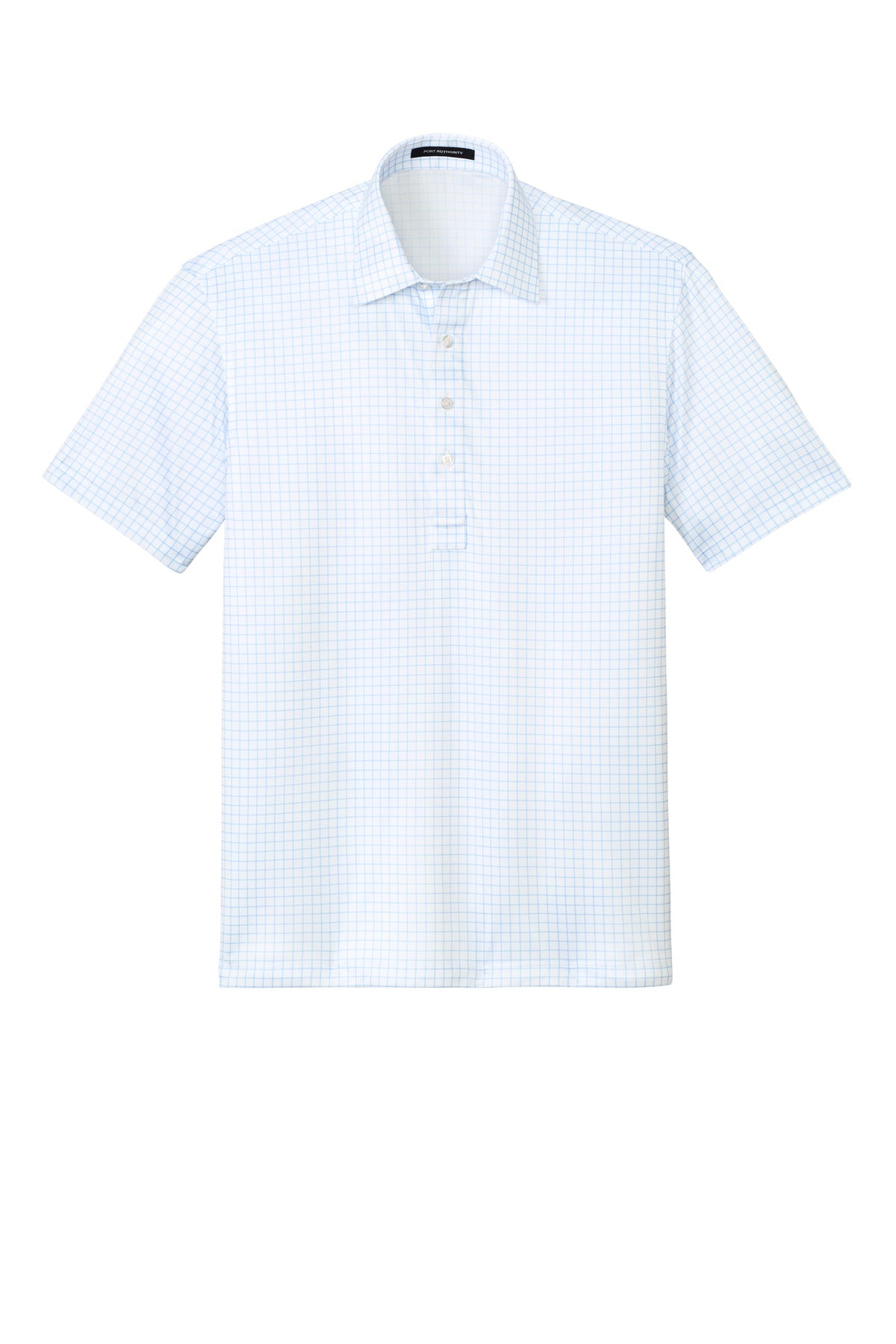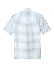 The structure of a traditional dress shirt collar meets the all-over comfort of a knit polo in this lightweight breathable style. Made to perform it also fights snags moisture odor and UV rays. 3.8-ounce 100% polyester interlock Snag-resistant Moisture-wicking Odor-fighting UPF rating of 50+ (Solids) UPF rating of 30 (Check Prints) Spread collar with integrated bonded collar stays 4-button placket Pearlized buttons Self-turned cuffs Straight self-turned hem