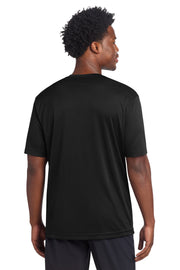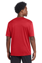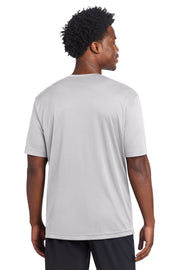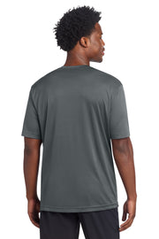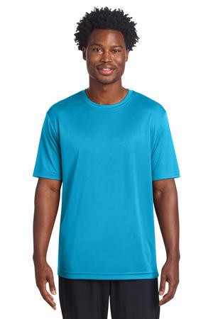 Recycled polyester and color-locking PosiCharge technology make this smooth-faced odor-fighting moisture-wicking tee outcompete other t-shirts. 3.8-ounce 100% recycled polyester with PosiCharge technologyThis product's carbon footprint has been measured and reduced through a combination of preferred materials and investing in carbon offset projects through the ClimeCo Certified Product Program Tear-away removable label Taped neck Set-in sleeves Athletic fit